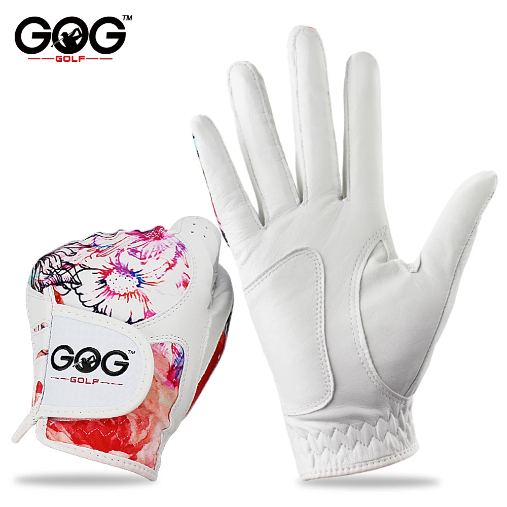 1 Pair GOG Golf Gloves Genuine Leather & Color Pattern Lycra left hand + right hand soft sports new gloves for woman lady girls