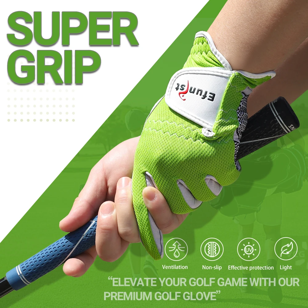 10 Pcs Efunist Golf Glove Men Left Hand Breathable Green 3D Performance Mesh Non-slip Micro Fiber Golf Gloves Supplies Drop Ship