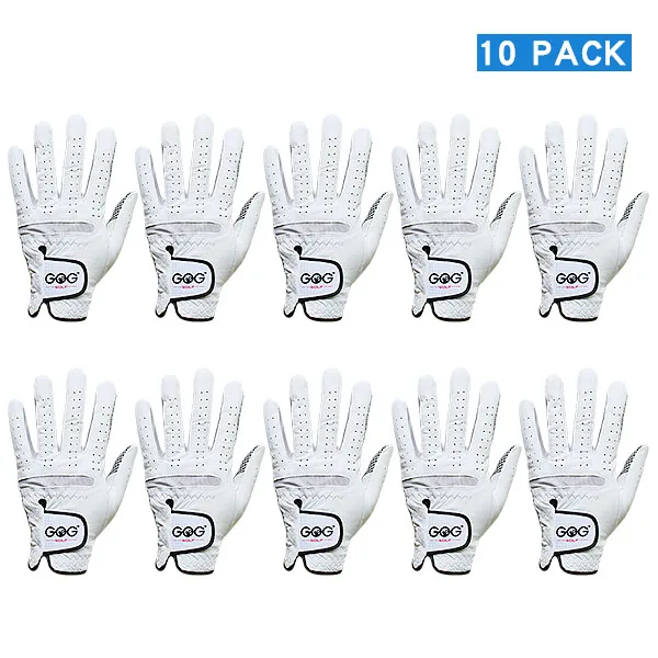 10 Pcs Mens Golf Gloves Left/Right Hands Golfer White Leather Wholesale Golf Accessories Supplies Drop Ship