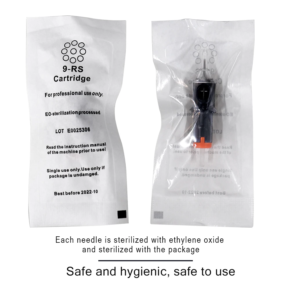 1.The cartridge tattoo needle is made of 316 medical stainless steel and 100% E.O. sterilized and packaged in blister pack.