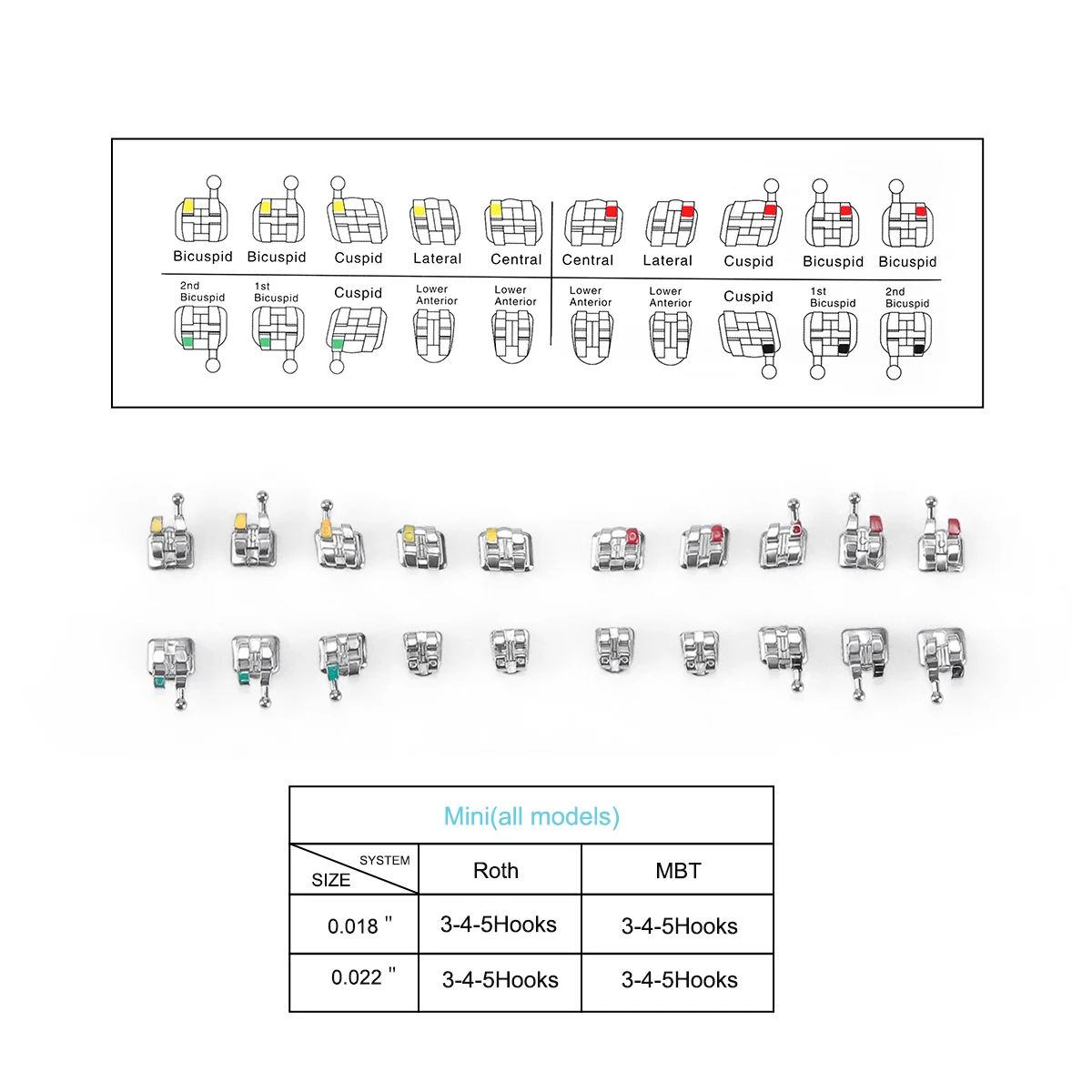 Model: Mini Roth/MBT 0.022″/0.018″ with 3-4-5 Hooks