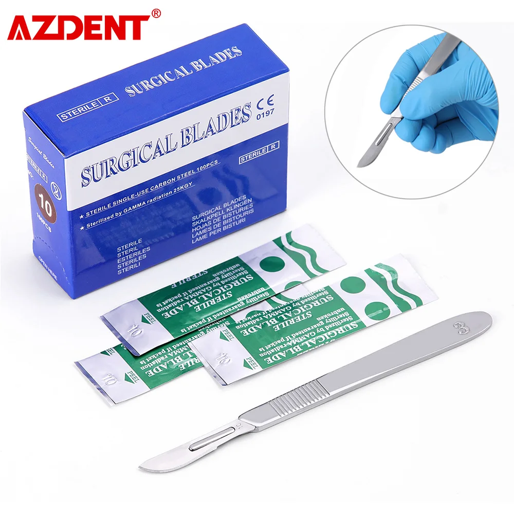 100Pcs/Box Dental Surgical Scalpel Sterilized Blades Scalpel Blades + 1PC Medical Dental Surgical Scalpel Blade