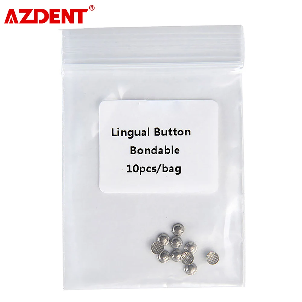 10pcs AZDENT Dental Metal Lingual Buttons Buckle Orthodontic Buttons Bondable Round Base Dentist Material