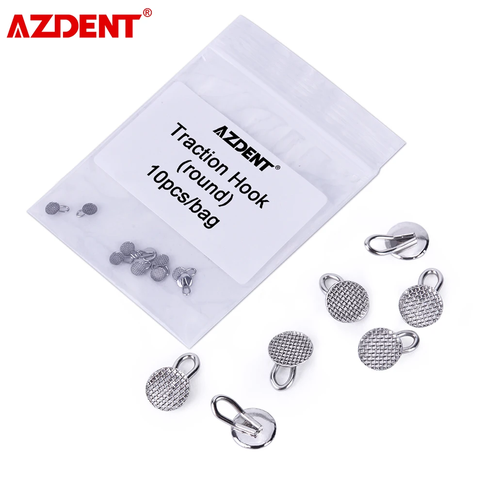 10pcs/bag AZDENT Dental Orthodontic Lingual Button Round/Rectangular Base Bondable Traction Hook Dentists Ortho Material