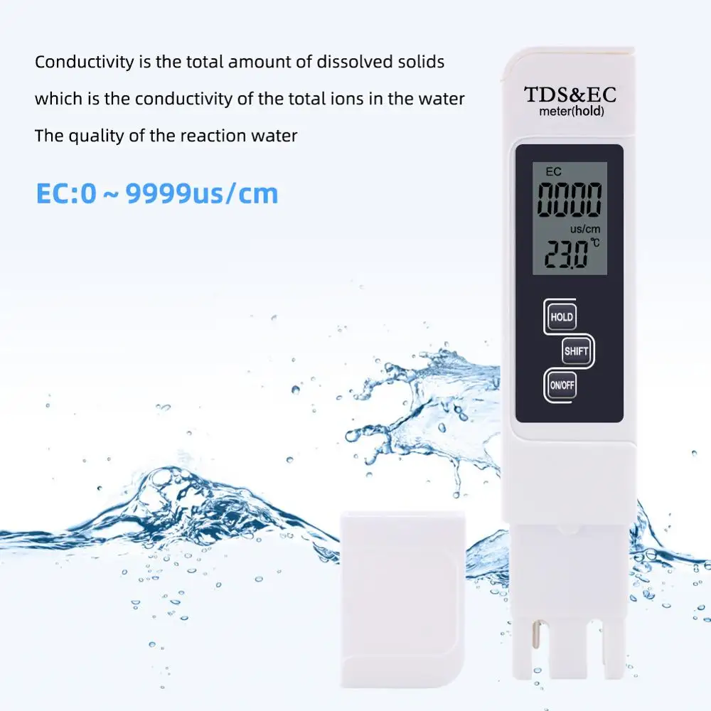 Provides accurate and reliable test readings: 3-In-1 Digital TDS meter provides accurate readings for TDS (Total Dissolved Solids) EC (Electrical Conductivity) and temperature. Professional, Accurate, and Precise 3-in-1 TDS, EC, and Water Temperature Meter. The TDS meter has automatic temperature compensation in measurement mode. 9 minutes no operation, the meter will automatically shut down. Save power, extend battery life