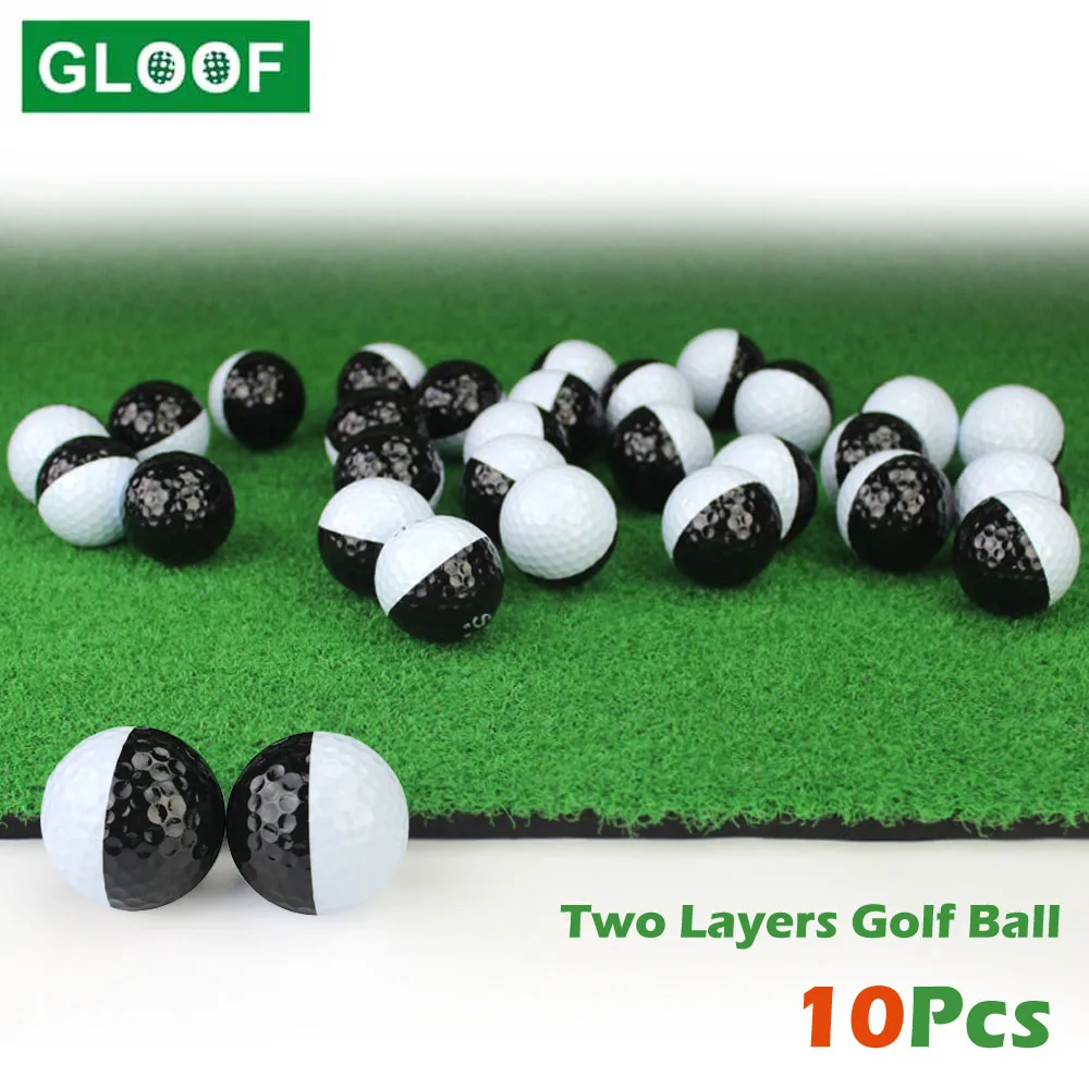 10Pcs Rubber Golf Balls Two Layers High Grade Outdoor Sport Golf Game Training Match Competition Black and White