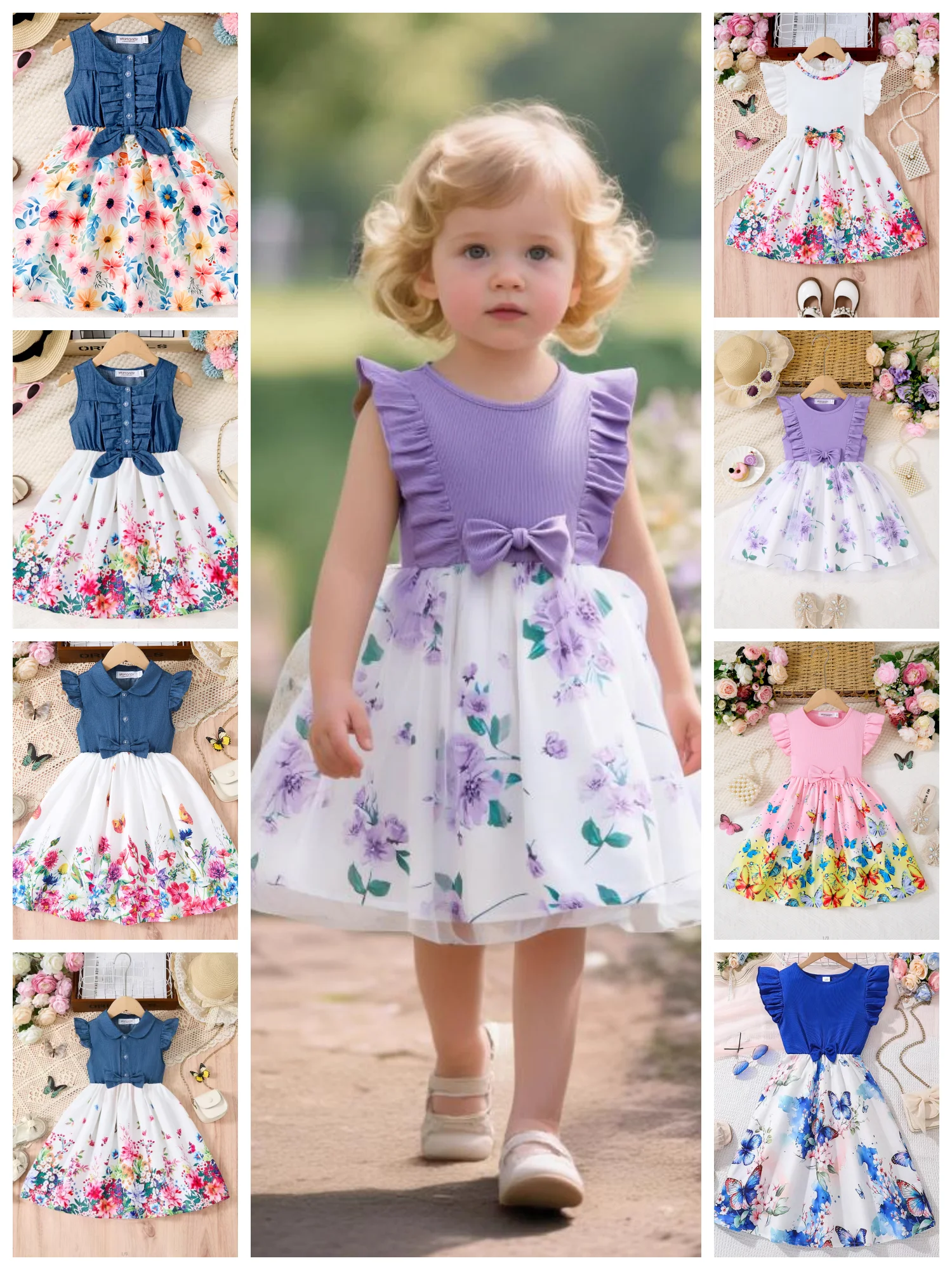 2-10Y Print Splicing Flower Dress Children’s Birthday Ruffled Sleeveless Floral Princess Summer Dresses For Baby Sweet Girls