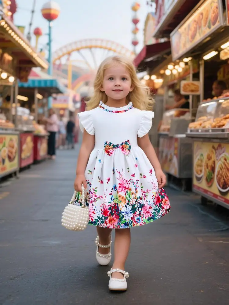 Polka Dot Vintage Kids Cotton Dress Flower Floral Midi Summer Dress Baby Girl