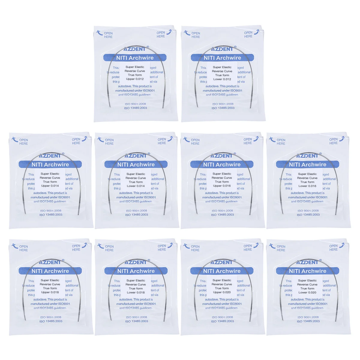 2 pcs/Pack AZDENT Dental Orthodontic NITI Arch Wires Reverse Curve Round / Rectangular Shape Archwire True Form Dental Products