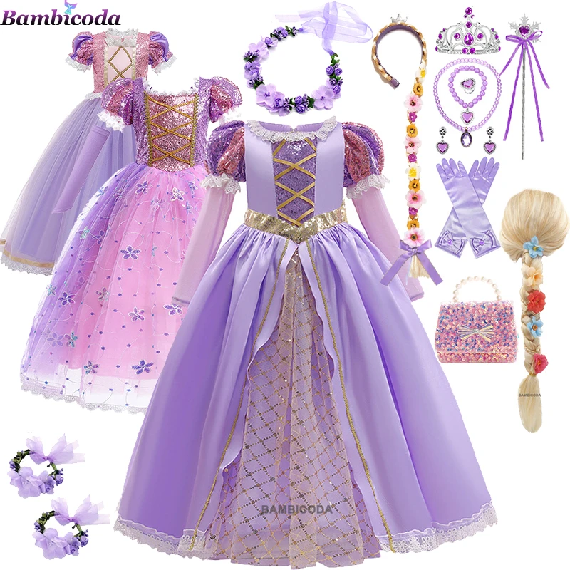 Girls Anime Princess Dress Summer Dresses Girls Cosplay Rapunzel Dress New Year Carnival Costume Birthday Party Dress For Girls