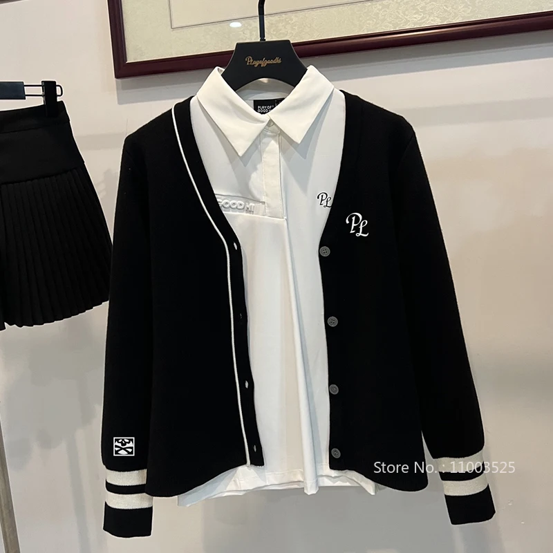 2024 Golf New Wear Women Autumn and Winter Warm Coat Slim Knitted Cardigan Sweater Ladies Golf Clothes