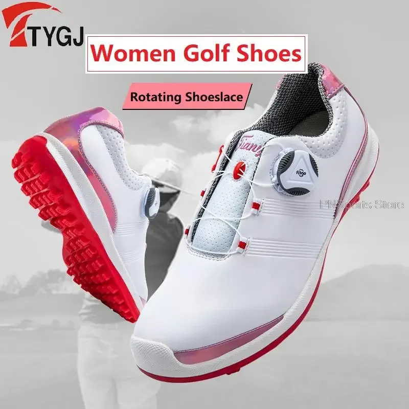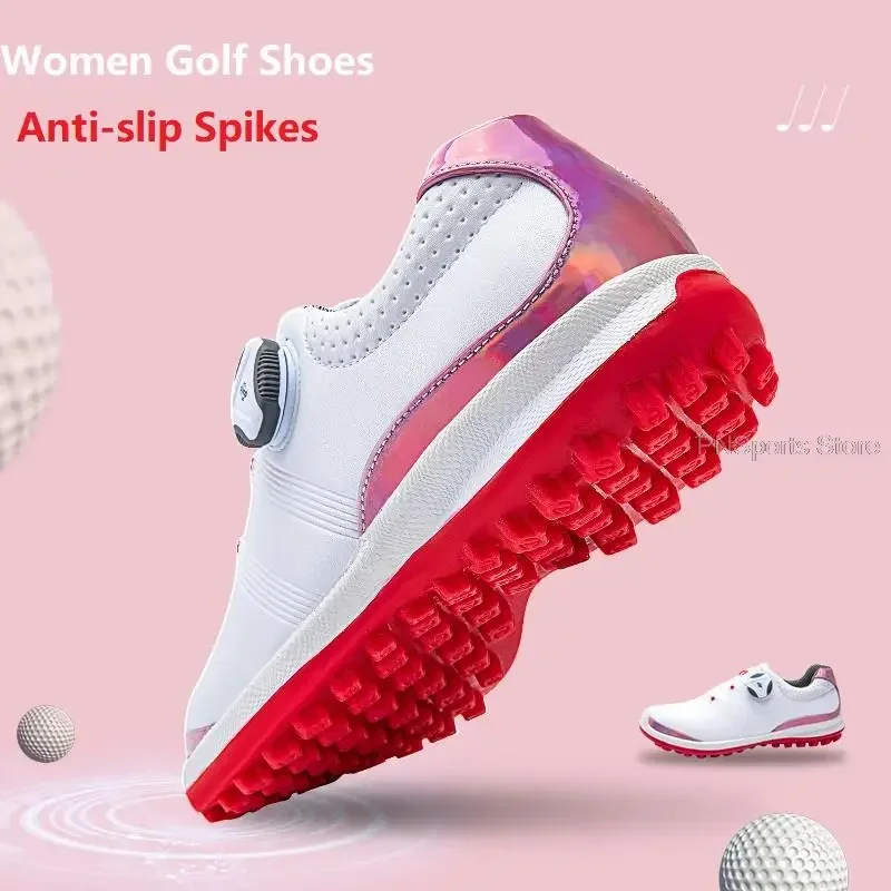 2024 Woman Waterproof Golf Shoes Non-Slip Wear-Resistant Golf Sneakers Female Breathable Soft Golf Shoes Rotating Shoeslace