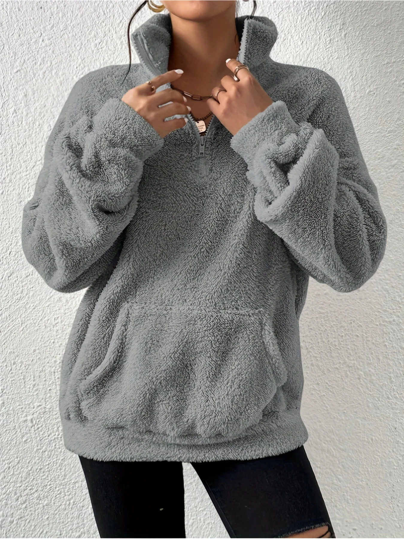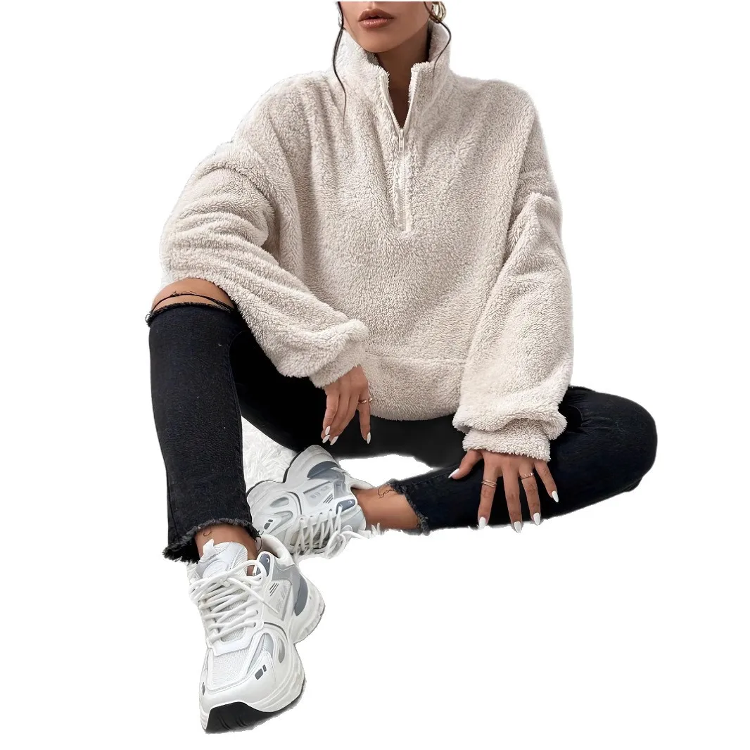 2025 Autumn Winter Fashion Women Velvet hoodie Solid Color Thickened Plush Pullover Big pocket Warm Long Sleeve Lady Sweatshirt