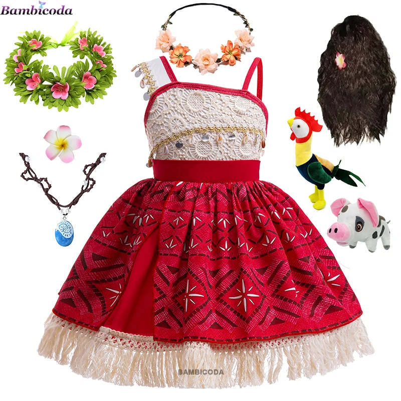 2025 Girls Movie Moana 2 Dress Girl Princess Fancy Clothes Vaiana Pua Pig Doll Outfit Halloween Party Adventure Costume