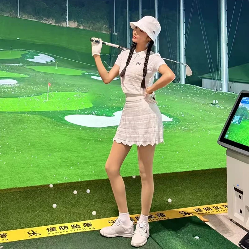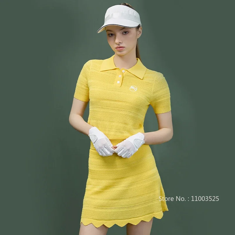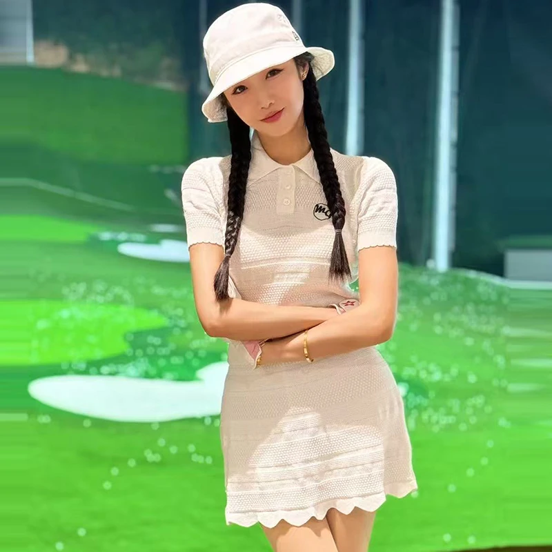 2025 MG Golf Women’s Korean Knit Tops Summer Slim Pencil Skirt Lady Sports Short Sleeve Lapel T-Shirt Breathable Skorts Suit
