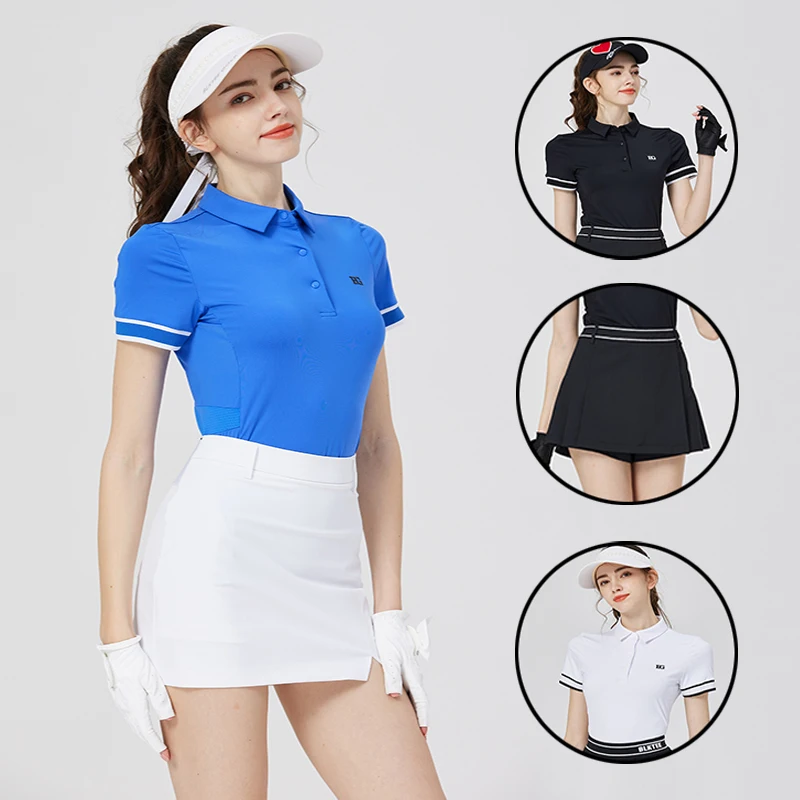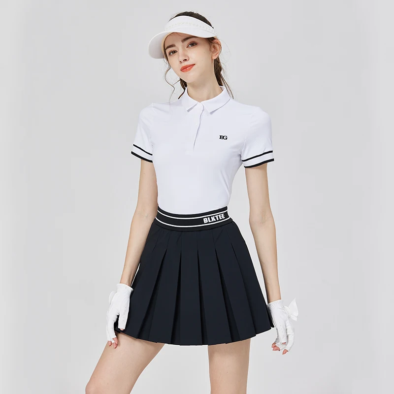 2025 New BLKTEE Golf Women’s Short-sleeved T-shirt Summer Lapel Quick-dryTops Ladies Pleated Golf Skirts Slim Skorts Suit