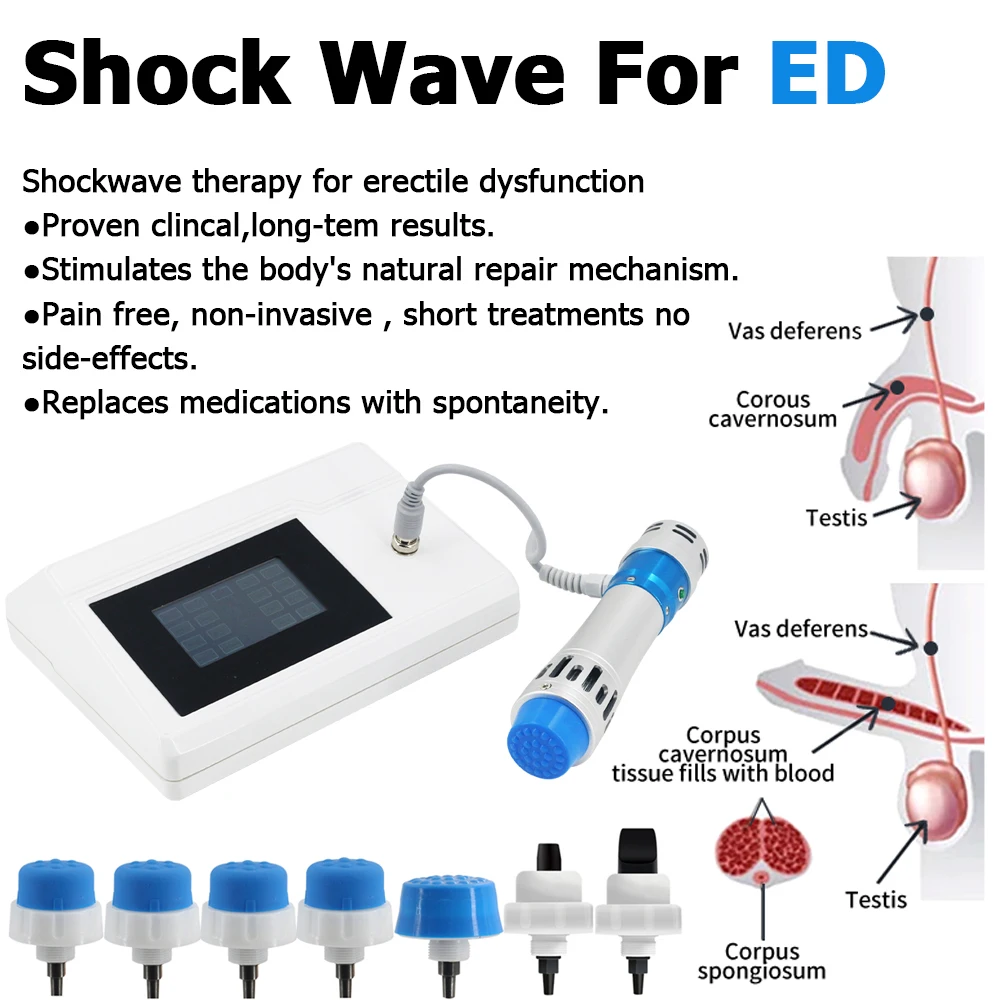 A shock wave is defined as a wave in which the pressure increases rapidly in a short period of time, and then the pressure gradually drops, and the negative pressure phase is small. The shock wave is aimed at the affected area where chronic pain is sourced. The impact of the shock wave causes the dissolution of calcium deposits and leads to better vascularization, which can relieve pain and can also help the treatment of male erectile dysfunction.