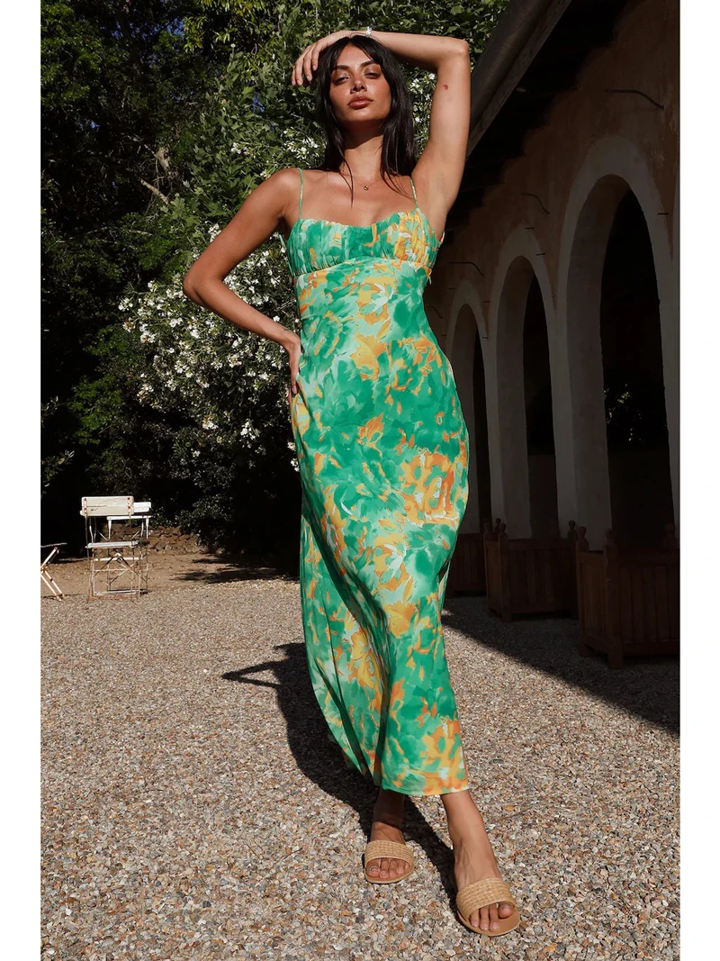 2025 Summer Fashion New Bohemian Vacation Style Elegant and Sexy Beach Vacation French Low Cut Strap Long Open Back Skirt
