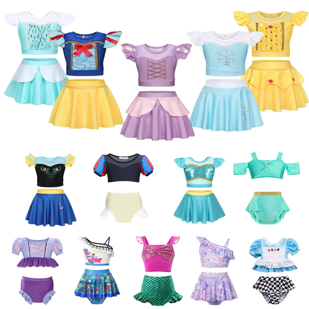 2025 Summer Girls Princess Collection Swimsuit Beach Anna Elsa Snow White Belle Child Kids Bathing Suit with Skirt 2PC Set 2-10T