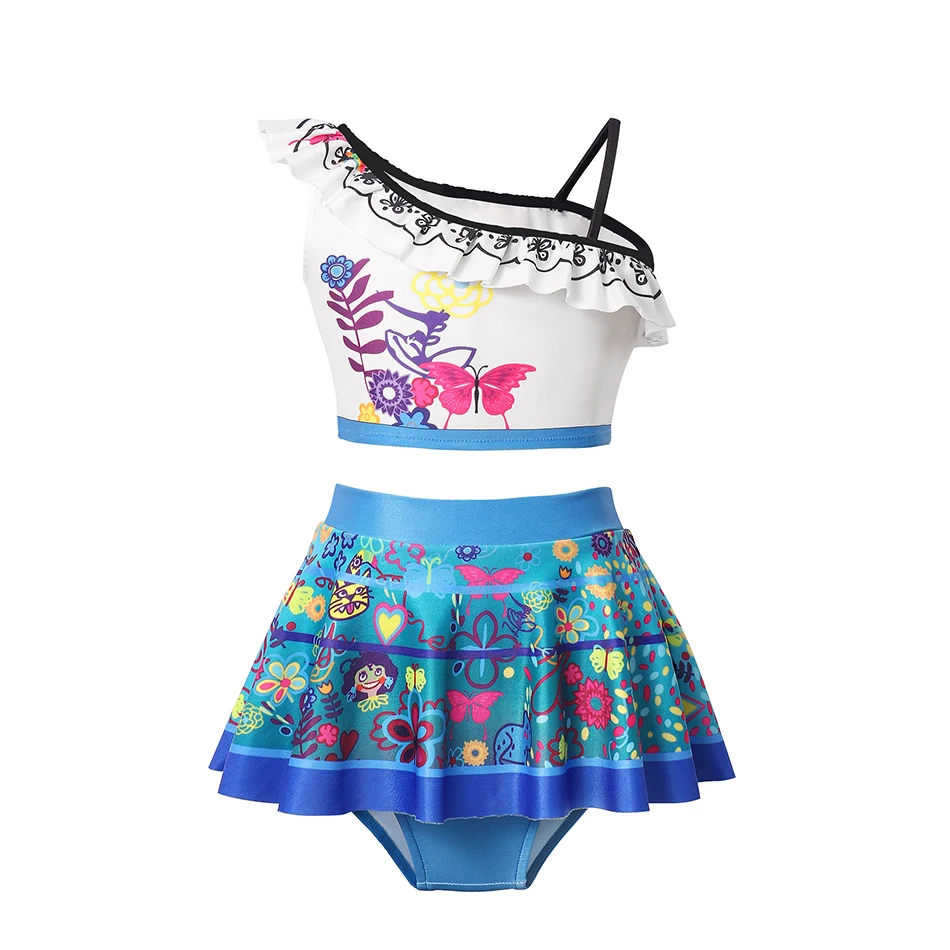 Summer Pool Bikini 2PCS Set for Kids Girl Princess Theme Mermaid Ariel Swimsuit Mirabel Printed Bea...