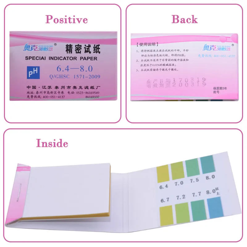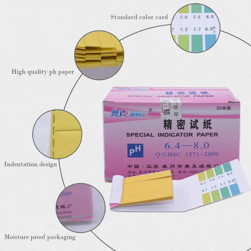 20pcs/Box PH Meter 6.4~8.0 PH Test Strips Indicator Test Strips pH Paper Litmus Tester Measurement Tool with Card
