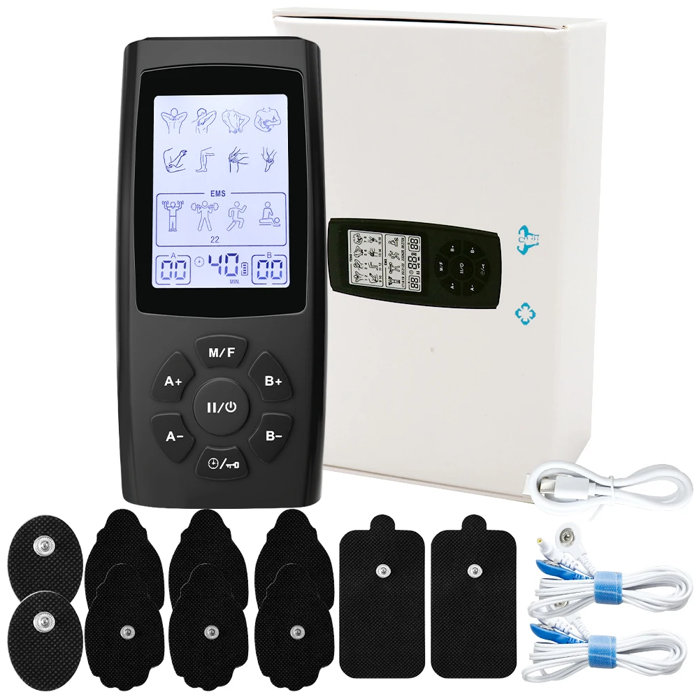 6/12 Modes Tens Machine Unit 4 Electrode Pads for Pain Relief Pulse Massage EMS Muscle Stimulation ...