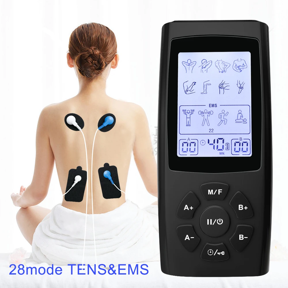 28 Modes Electric EMS Pulse Digital Physiotherapy Muscle Stimulator Acupuncture Tens Body Massage Therapy Slimming Massager