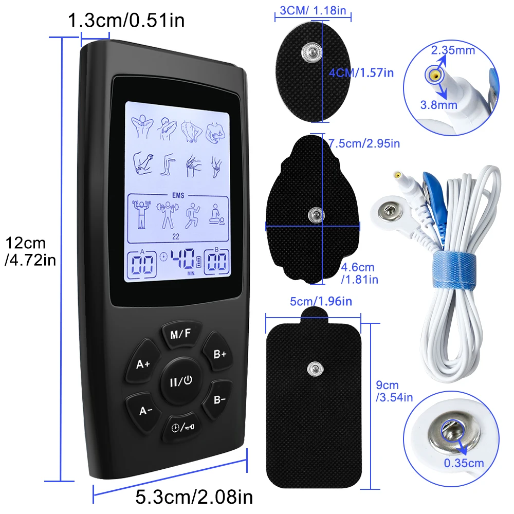 Short press the “M/F” to select different modes in TENS & EMS functions.long press “M/F” to switch from TENS & EMS funtions.