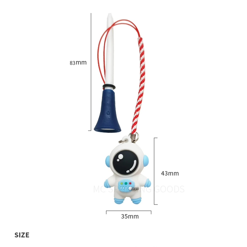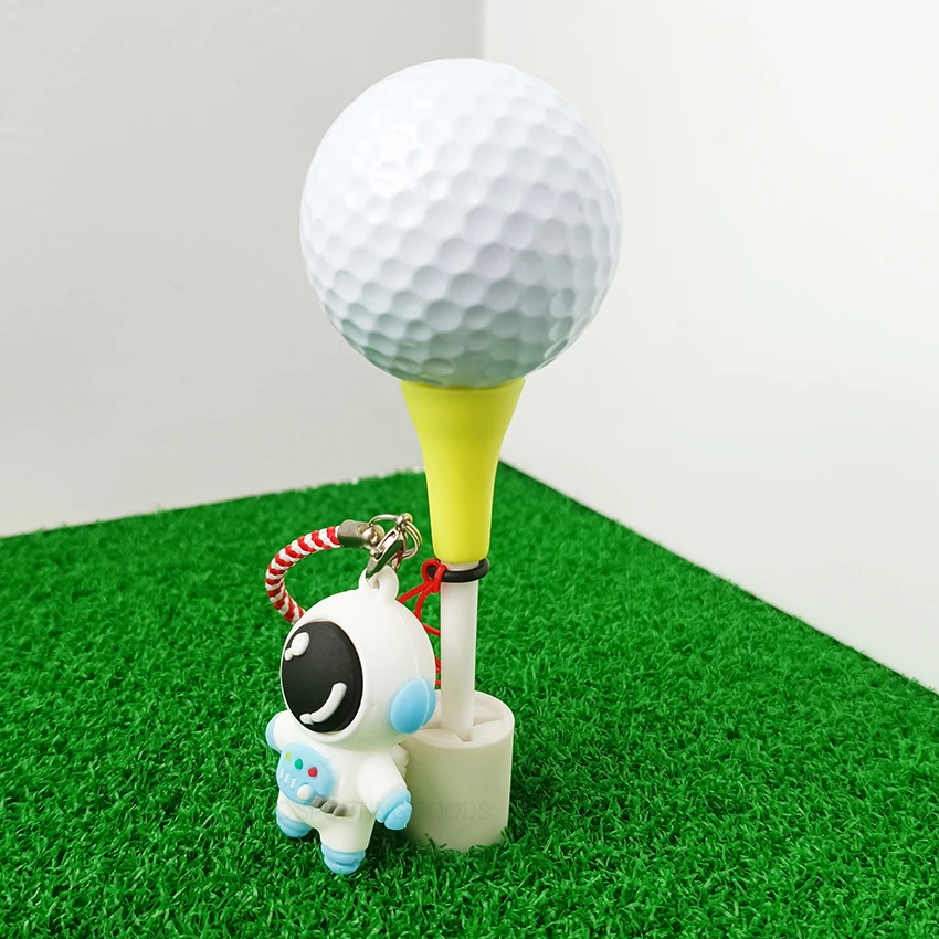 2pc/set Golf Rubber Mixed Color Tee With 3D astronaut Cute Cartoon characters Prevent Loss Handmade Rope Golf Ball Holder