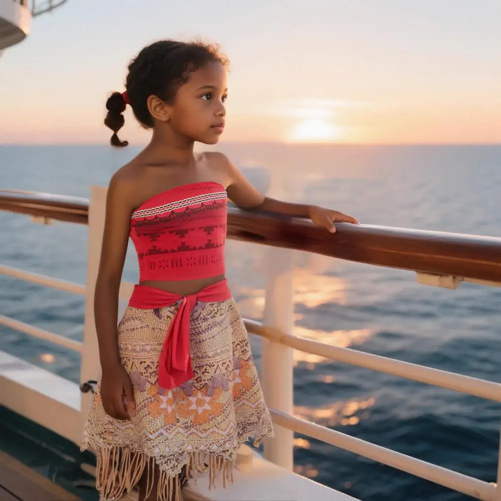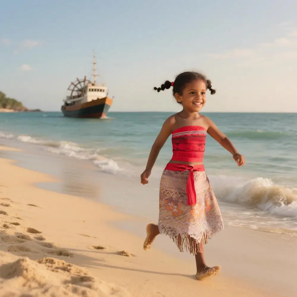 2Pcs Girls Movie Moana 2 Dress Girl Vaiana Princess Summer Casual Dress Children Christmas Carnival Birthday Party Cosplay Gown