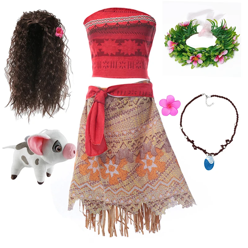 2025 Girls Movie Moana 2 Dress Girl Princess Fancy Clothes Vaiana Pua Pig Doll Outfit Halloween Par...