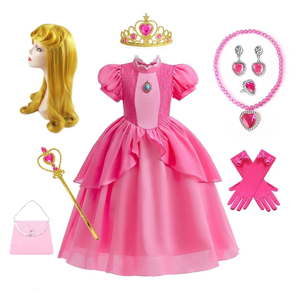 Rosalina Dress Girls Peach Costume Daisy Cosplay Children Birthday Party Carnival Fancy Outfit