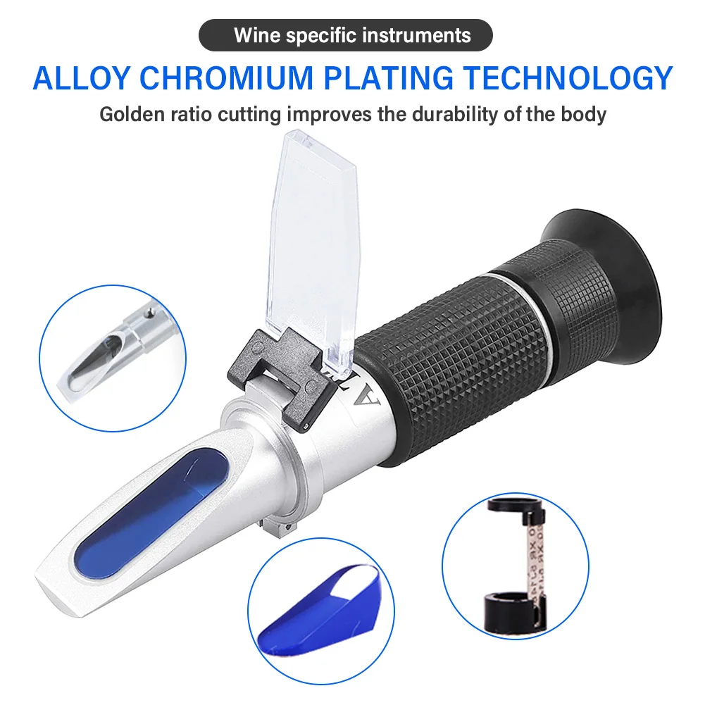 3-in-1 Grape Wine Refractometer 0-25% Alcohol 0-40% Brix 0-25°Baume' Tester Concentration Meter with ATC for Brewing Winemaking