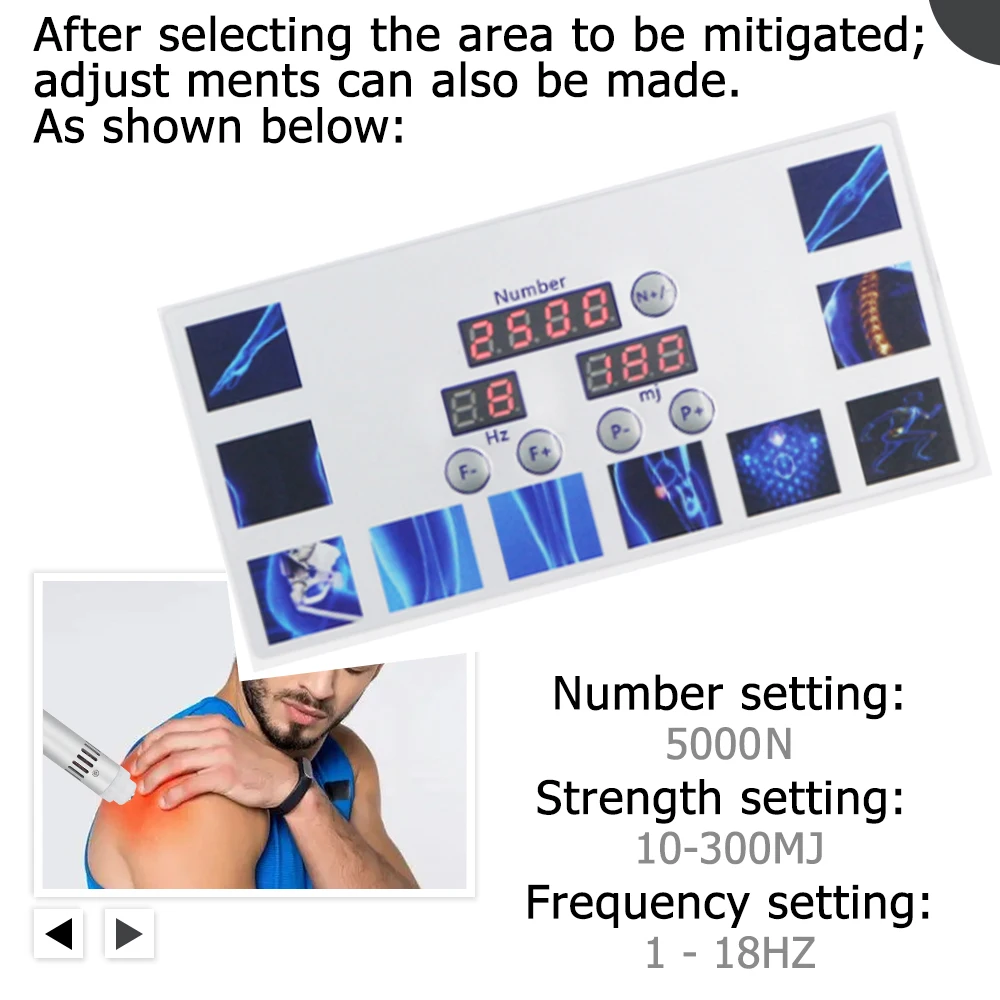 The shock wave can treat a variety of pain: shoulder pain, calcified fasciitis,radial or ulnar epicondylitis,trochanteric tendinitis,lumbar or caudal pain, patellar tendinitis, tibial stress syndrome, Achilles tendon pain, plantar fasciitis, lipotomy, fat mass removal, ED treatment. Shock waves are aimed at the source of chronic pain. Shock waves can dissolve calcium deposits and lead to better angiogenesis, thereby reducing pain.