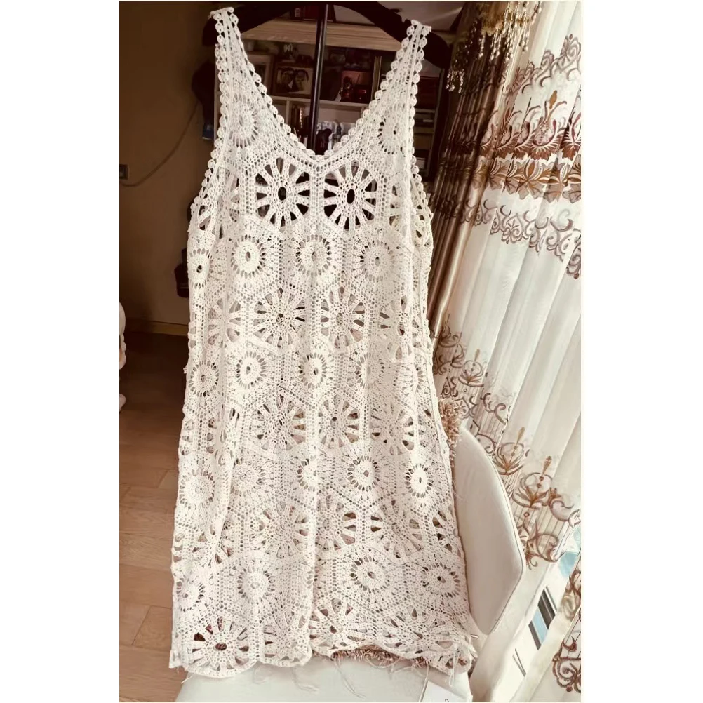 3D Flower Knitted Sling Long Dress Women Sexy Deep V-neck Backless Sleeveless Lace Up Femme Robes 2024 Summer Beach Dresses