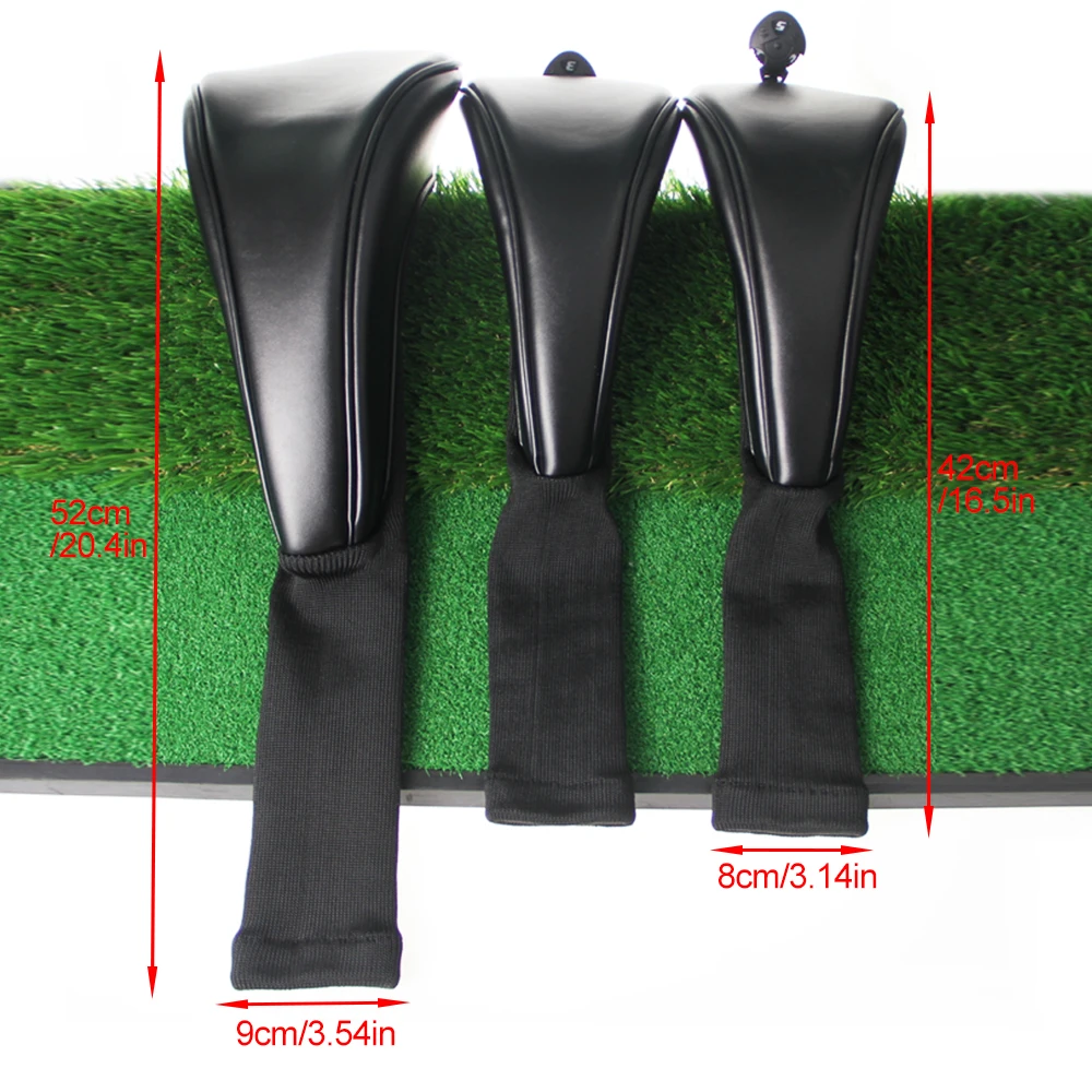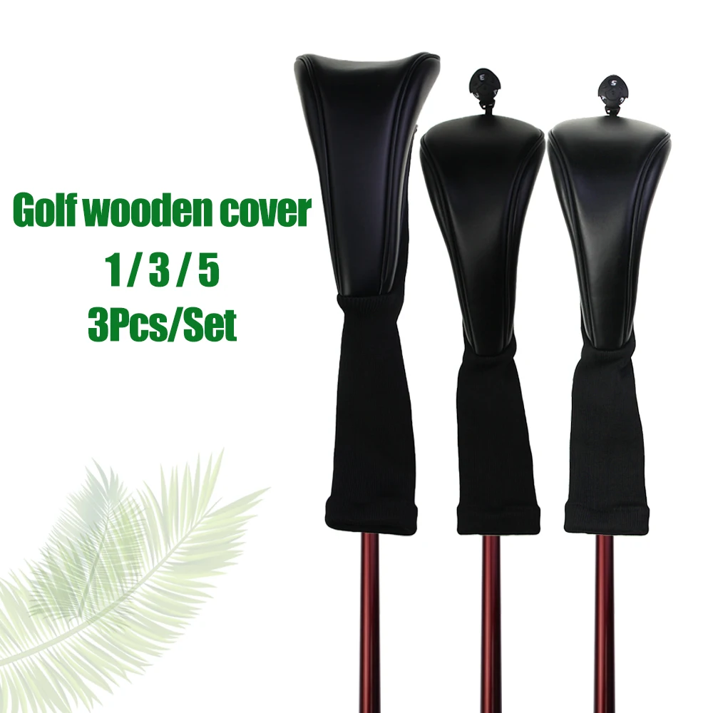 3Pcs/Set Golf Headcovers Black PU Leather Style 1 3 5 Driver and Fairway Head Covers Fits Drivers Classic Look