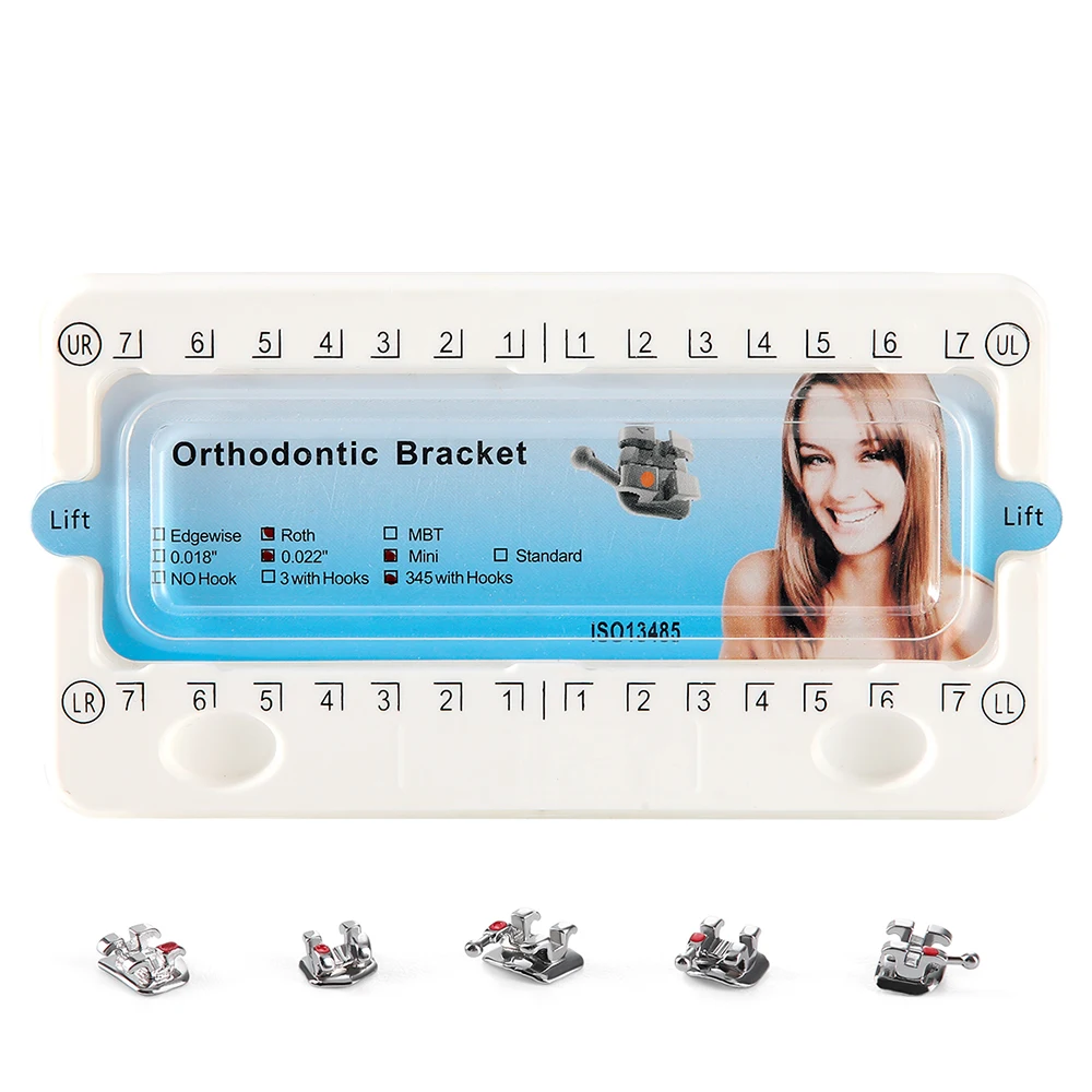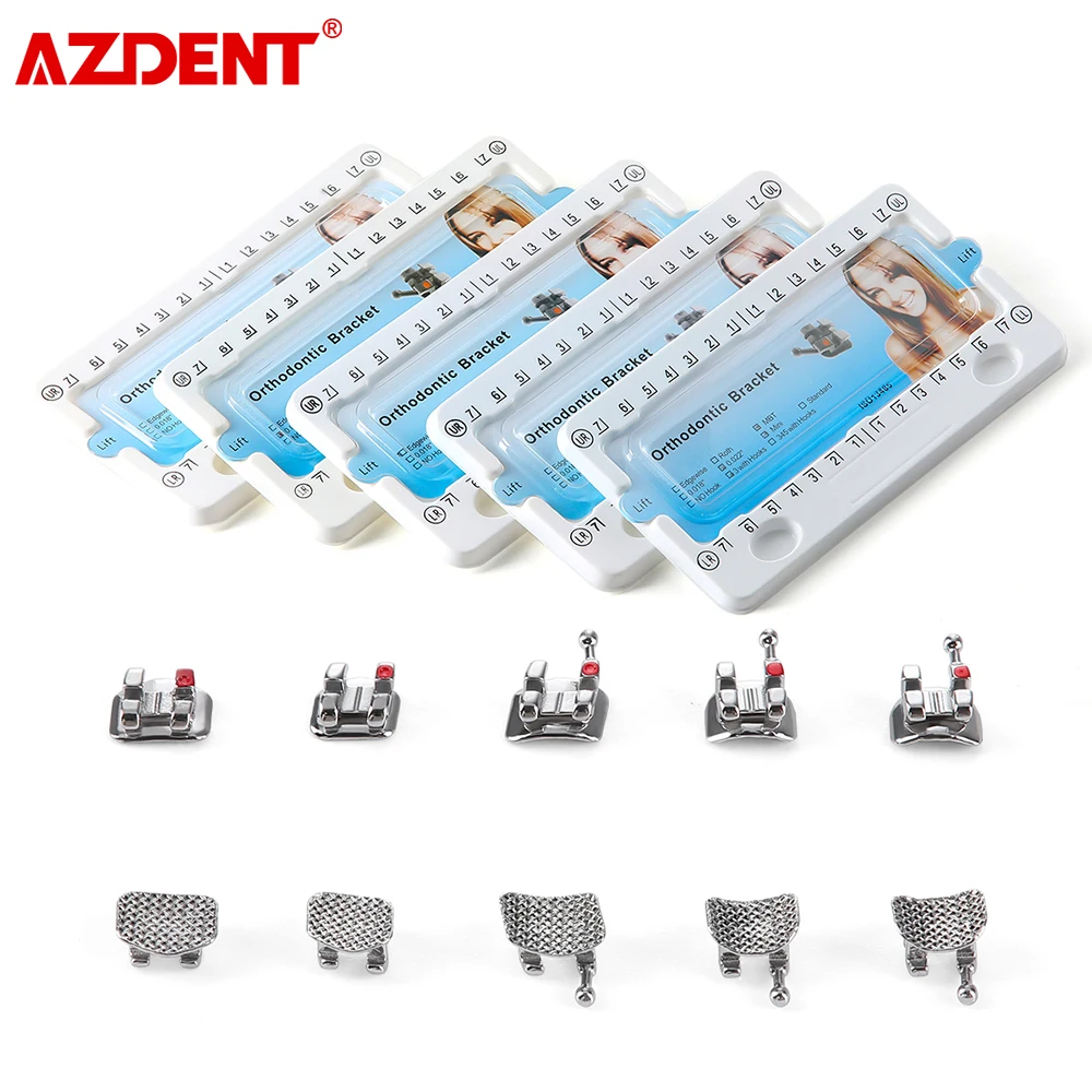 5 Packs AZDENT Dental Orthodontic Brackets Mini Metal Bracket Braces Mesh Base Roth MBT 0.022 0.018 Hooks 345 Dentistry Material