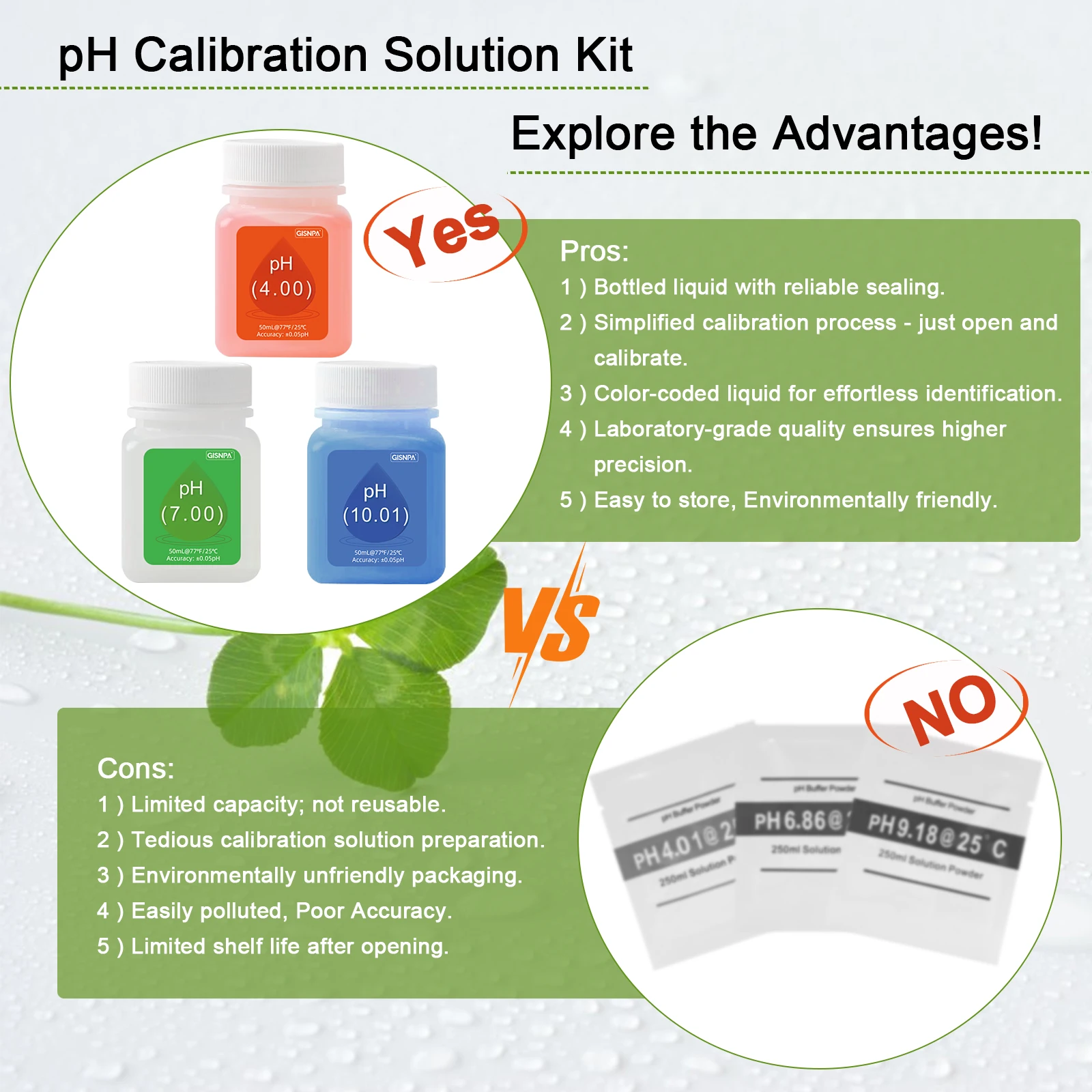 3. Each pH calibration buffer solution is color-coded for easy identification and hassle-free use.