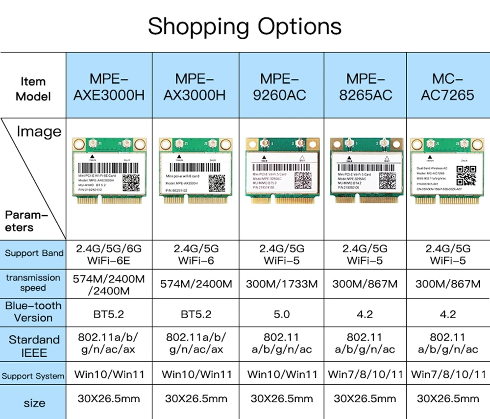 Model: Wi-Fi 6E MPE-AXE3000H;