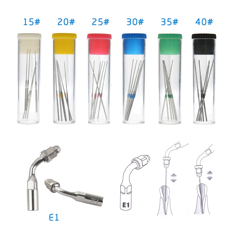6pcs/Bottle Dental U files Root Canal Endodontic Files NITI with Scaler Tips E1 E2 For EMS Woodpecker Ultrasonic Scalers