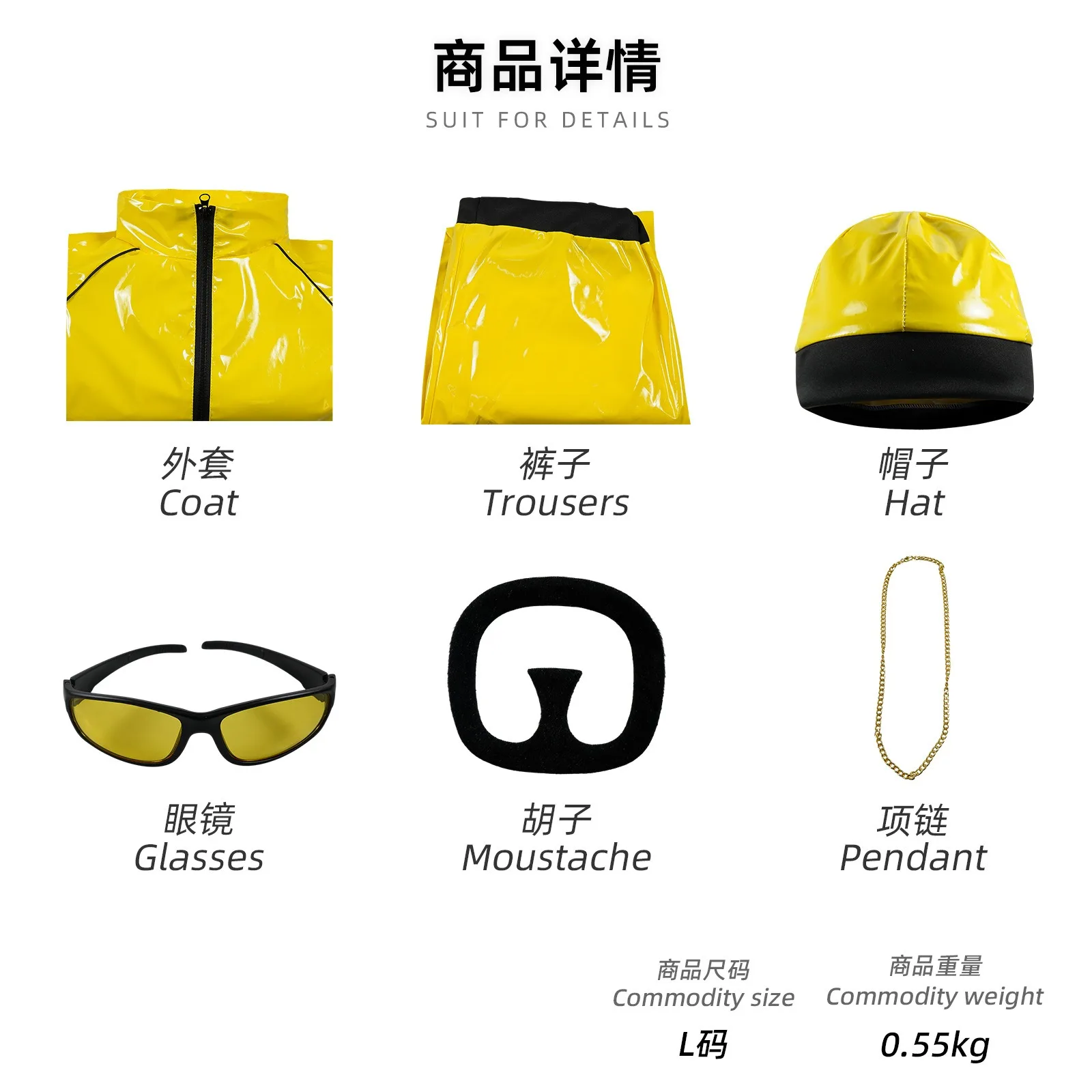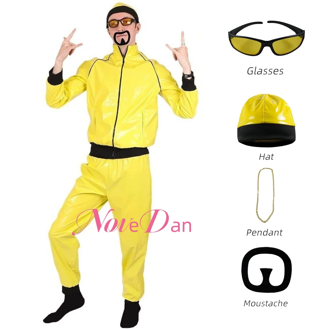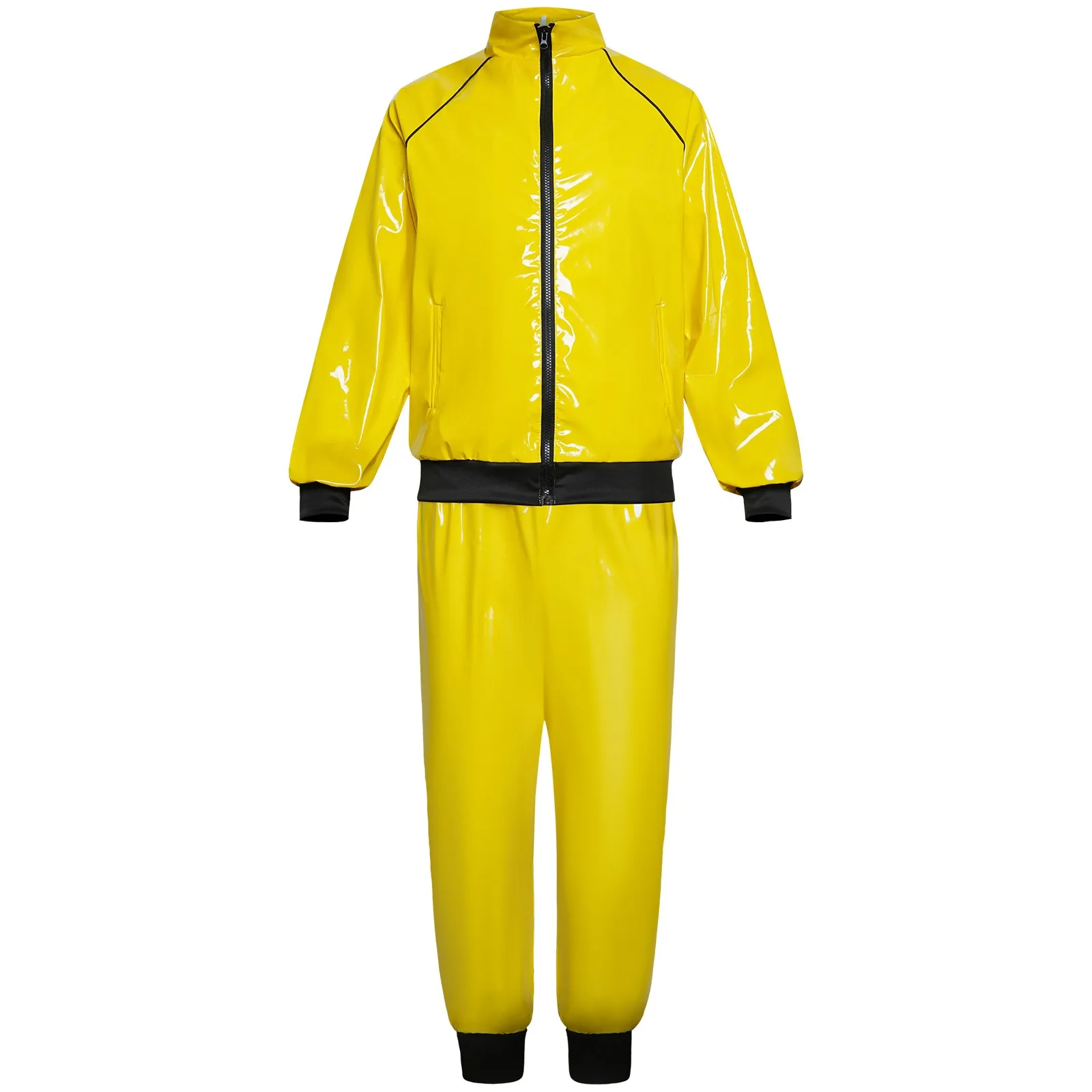 80S 90S Vintage Men Rap Suit Yellow Glossy Patent Leather Retro Disco Dance Singer Cosplay Halloween Stage Costume Props