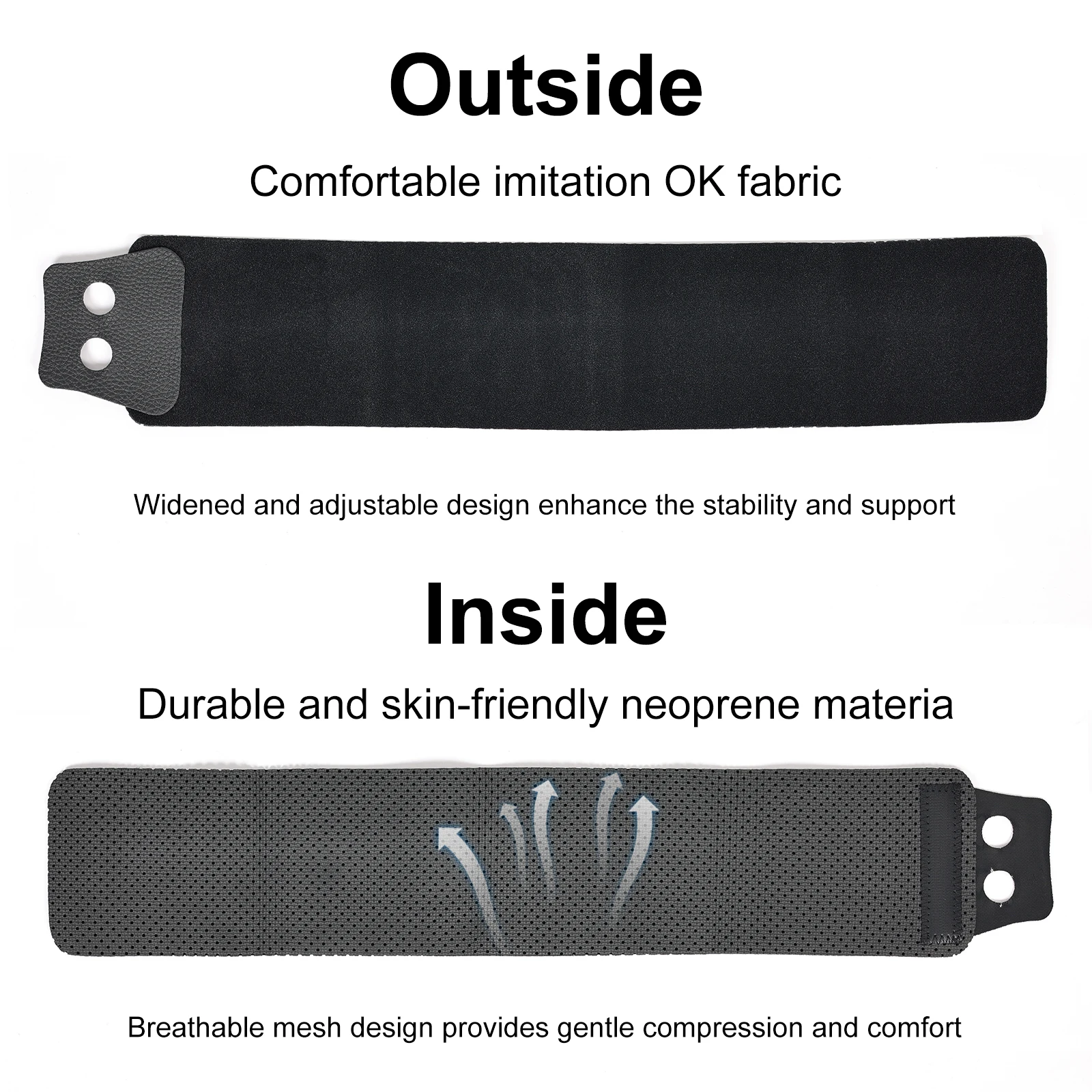 Constructed with lightweight, perforated neoprene material to provide compression and support while allowing airflow. this anti slip strap effectively reduce friction between the brace and your skin; You can bid adieu to skin irritations, thanks to the irritation reducing make of these straps.