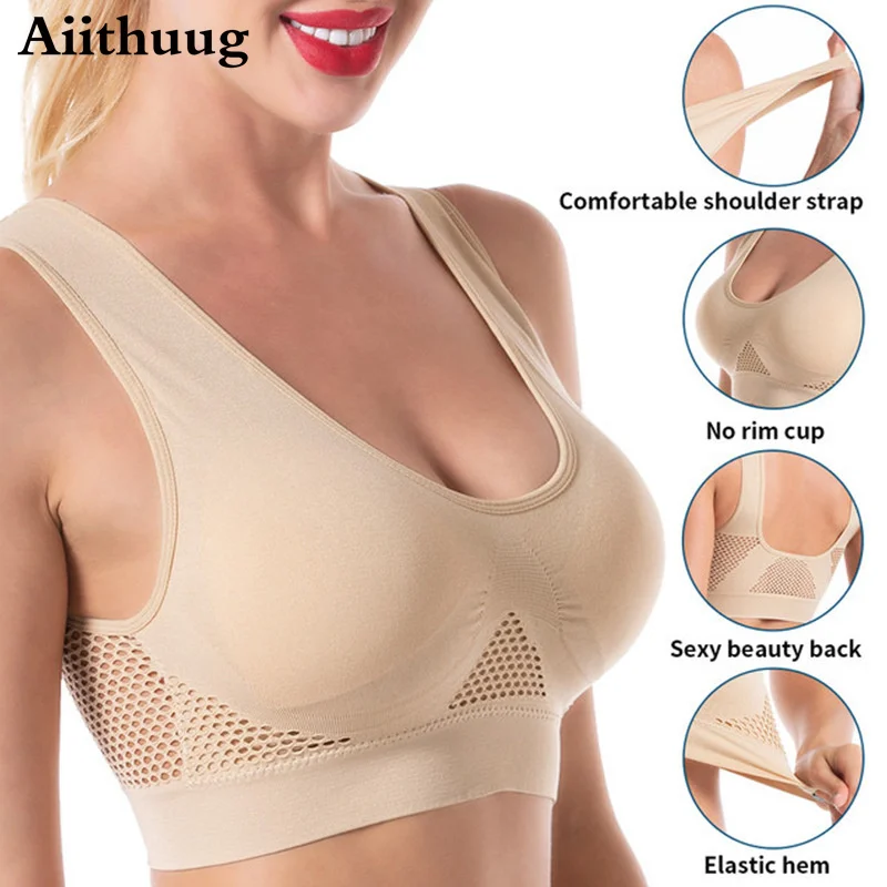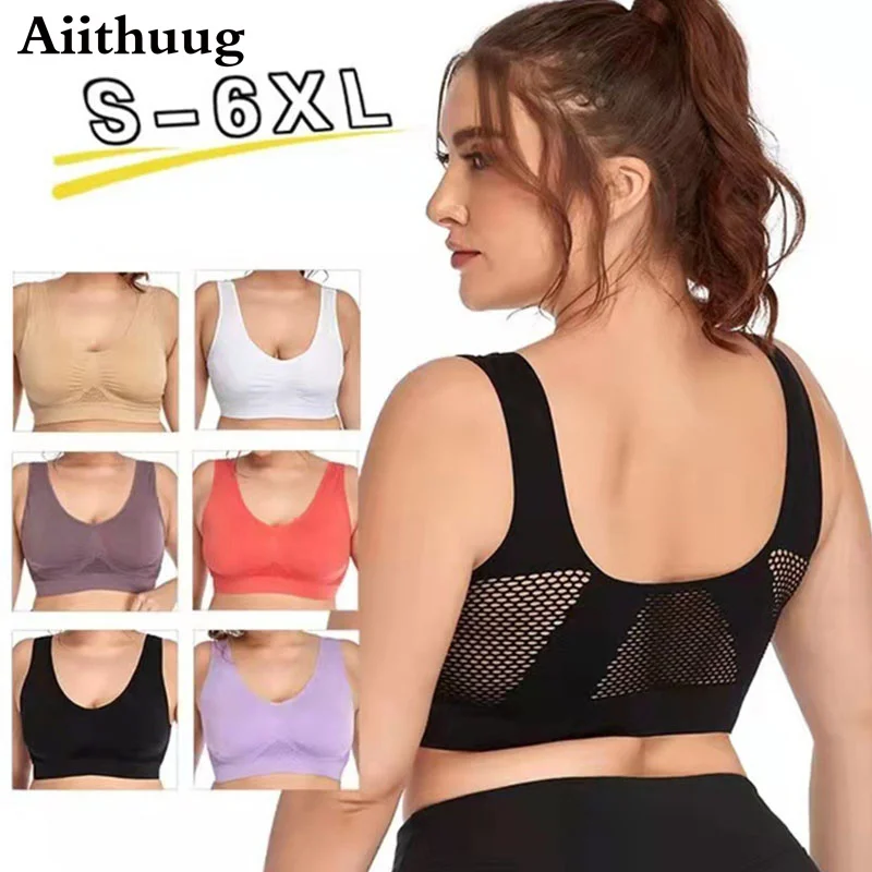 Aiithuug 6XL Racerback Sports Bra for Women – Comfortable Sleep Bra Seamless Workout Yoga Bra Plus Size Breathable Mesh Workout Top