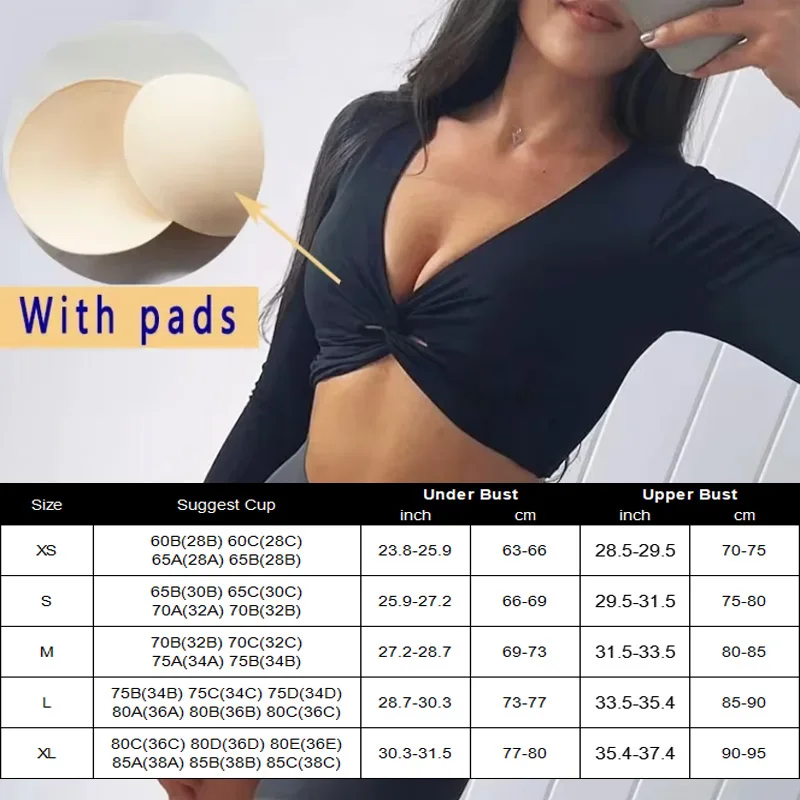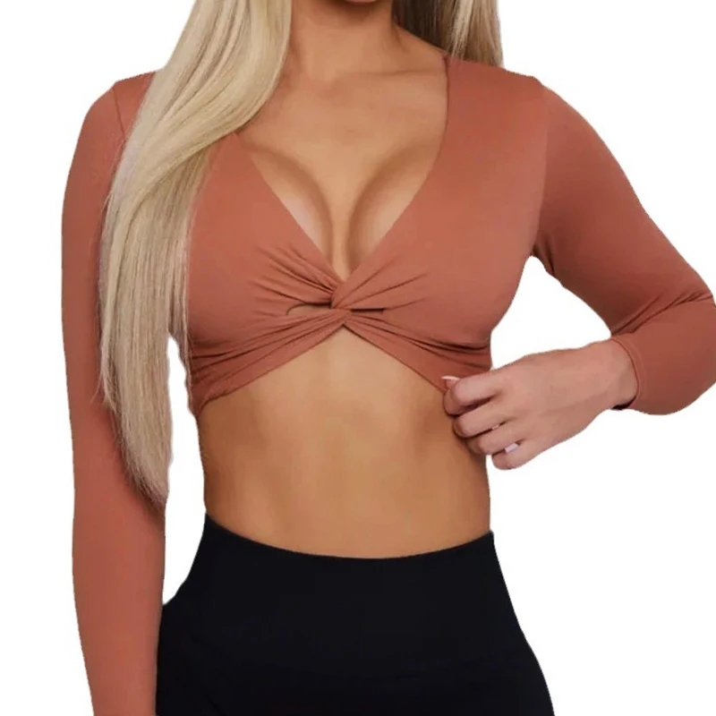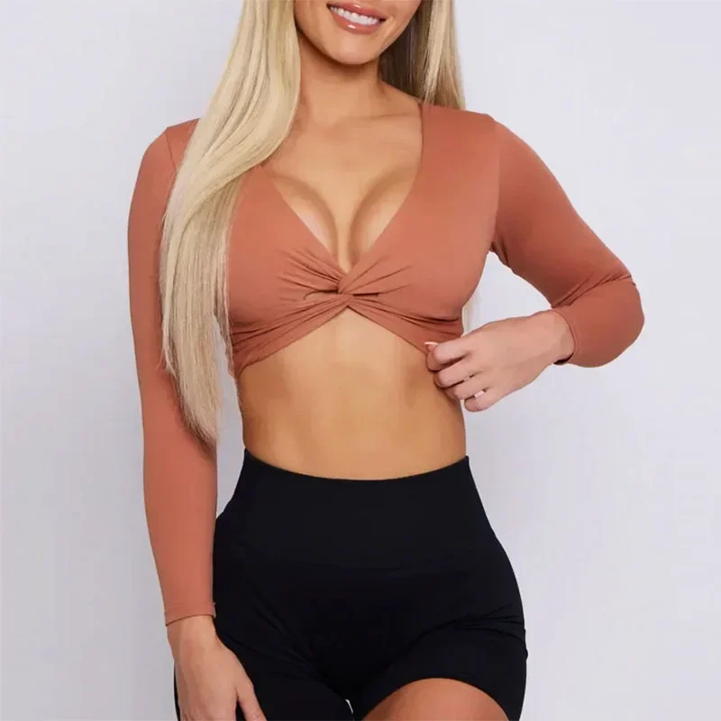 | Deep V Workout Shirts Padded Bra Cup Fit | Deep V Long Sleeve Gym Sexy Long Sleeve Gym Long Sleeve Crop Twist |