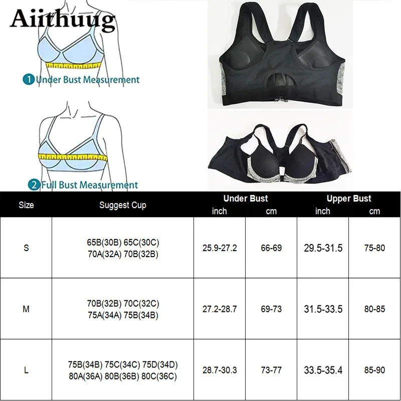 Features: front zipper closure, with inner cups, back magic sticker adjustable shoulder strap, zipper closure in front, elastic under bust band, wide shoulder strap release shoulder pressure, zipper protect from hurting. (Aiithuug Sports Bras High Impact Sportswear Push Up Bralette Top Fitness Running Yoga Bra Sports Bras for Gym Women Sport Bra)