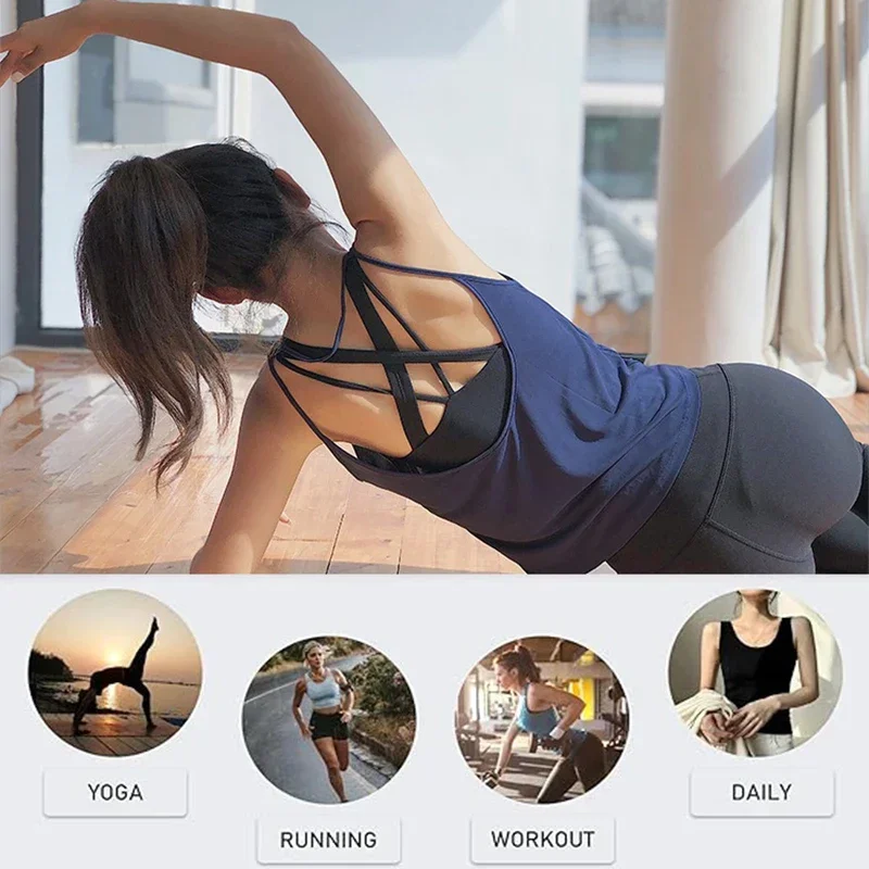 Aiithuug U Neck Low Back Curve Hem Yoga Tops Strapy Loose Vest Sleeveless Quick Drying Gym Sport Workout Pilates Cover-up Shirts