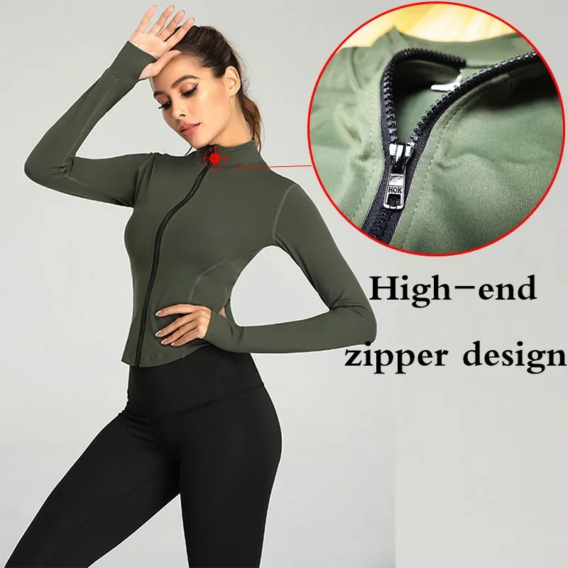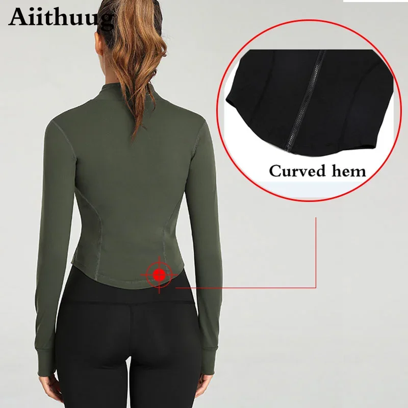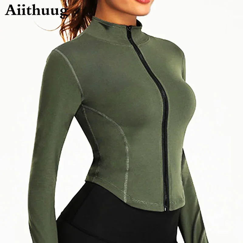 Aiithuug Women Full Zip-up Yoga Top Workout Running Jackets with Thumb Holes Stretchy Fitted Long Sleeve Crop Tops Activewear