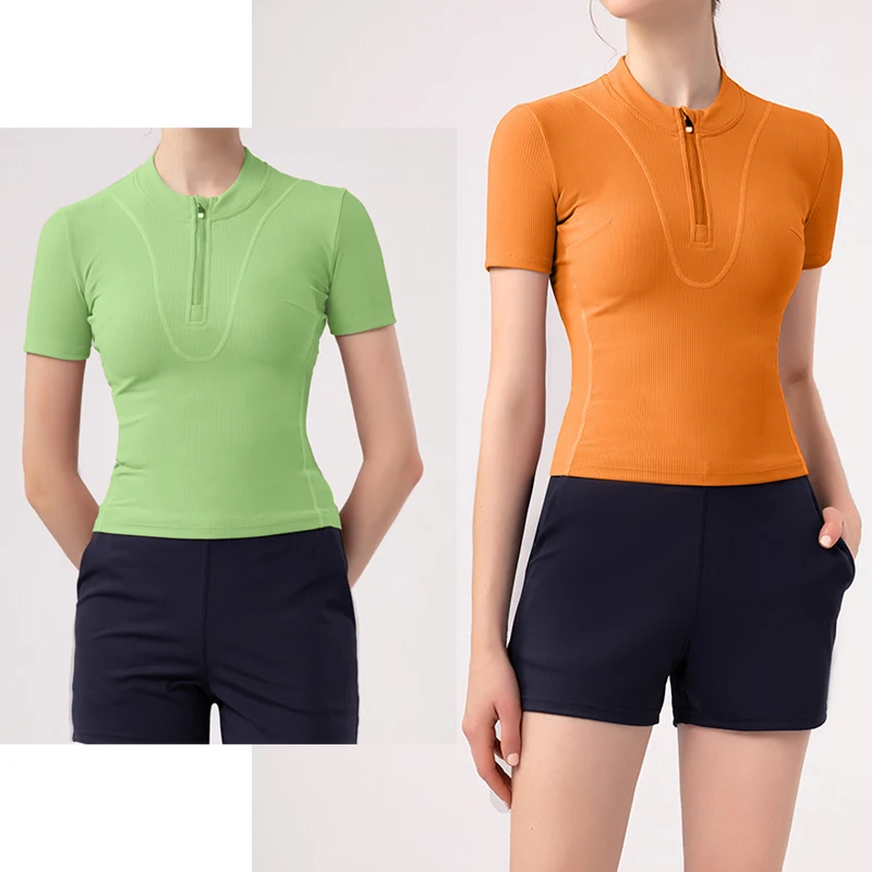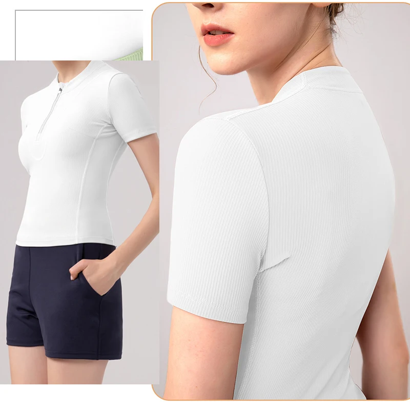 | Shirt Running Quicky Dry Short Sleeve | Women Slim Fit Gym Shirts Half Zip Workout Tops Quarter Zip Fitness |