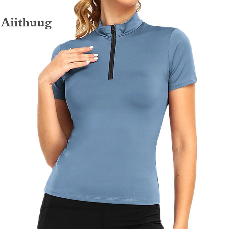 Aiithuug Workout Short Sleeve Gym Tops Quick Dry Half Zipper Quarty Zip Fitness Yoga Shirt Yoga Tops Active Wearing Jogging Wear