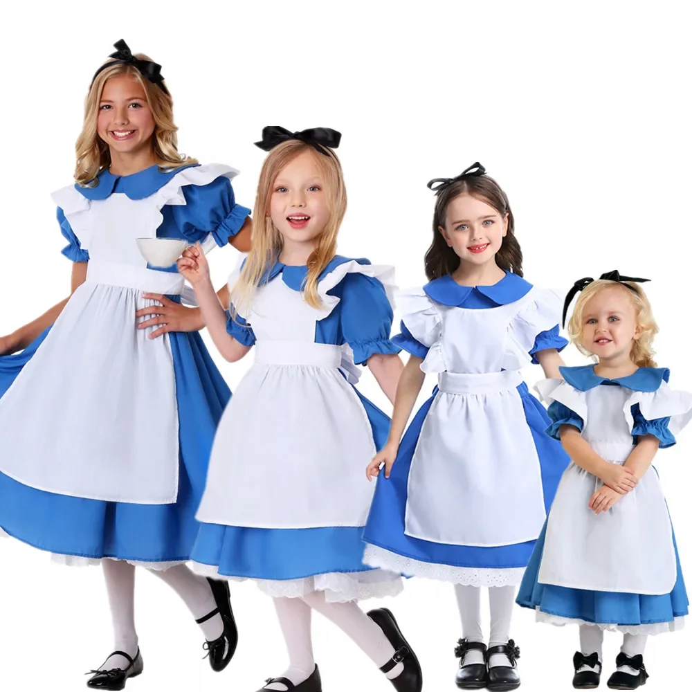 Alice in Wonderland Costume for Girls Kids Fantasias Lolita Maid Cosplay Halloween Carnival Party Fancy Dress Up